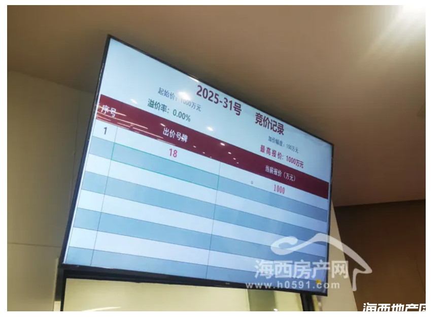 經(jīng)過1輪競價,18號競買人福州地鐵置業(yè)有限公司以底價1000萬競得福州宗地2025-31號,樓面地價5374.61元/㎡。