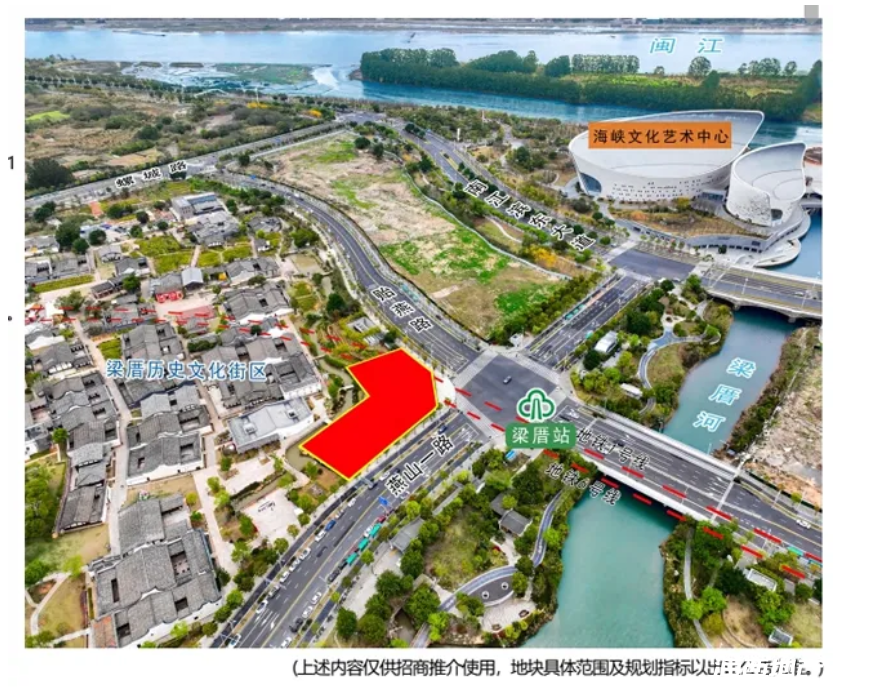 地塊所在片區(qū)文化底蘊深厚,配套資源豐富:緊鄰梁厝歷史文化街區(qū),保留了大量傳統(tǒng)古民居建筑,農(nóng)耕文化特色鮮明,與海峽文化藝術(shù)中心僅咫尺之遙,形成三江口文旅新地標(biāo),兼具歷史文化底蘊與現(xiàn)代藝術(shù)氣息。
