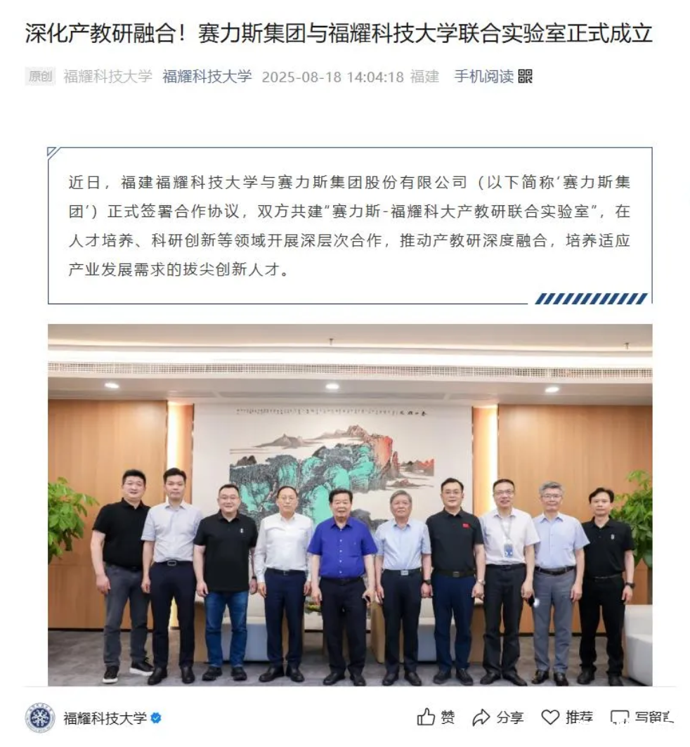 曹德旺透露,福耀科技大學(xué)邀請(qǐng)到資深教育家王樹(shù)國(guó)擔(dān)任校長(zhǎng),其上任一年來(lái),學(xué)校獲批教育部三個(gè)重點(diǎn)(培育)實(shí)驗(yàn)室,與海爾集團(tuán)、海信集團(tuán)、賽力斯集團(tuán)、一汽集團(tuán)、商飛集團(tuán)、中車集團(tuán)等幾十家行業(yè)領(lǐng)軍企業(yè)共建聯(lián)合實(shí)驗(yàn)室。