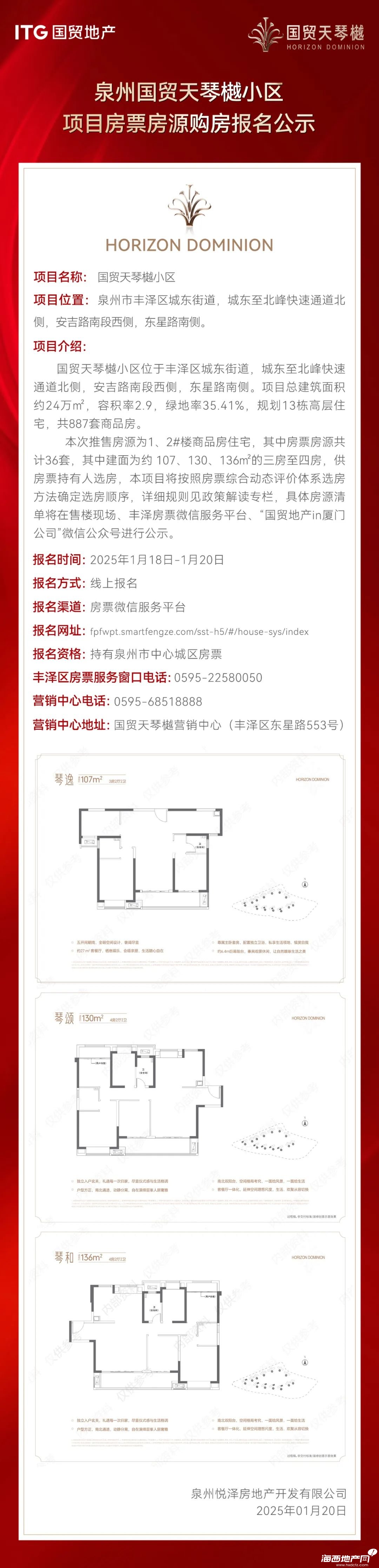 泉州國貿天琴樾小區項目房票房源購房報名公示